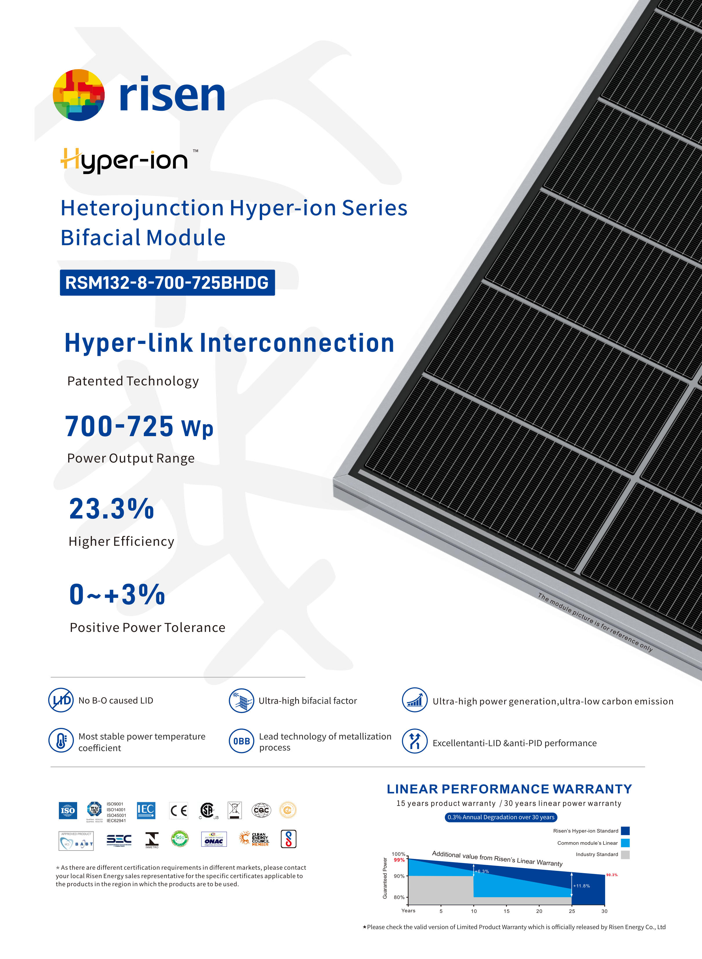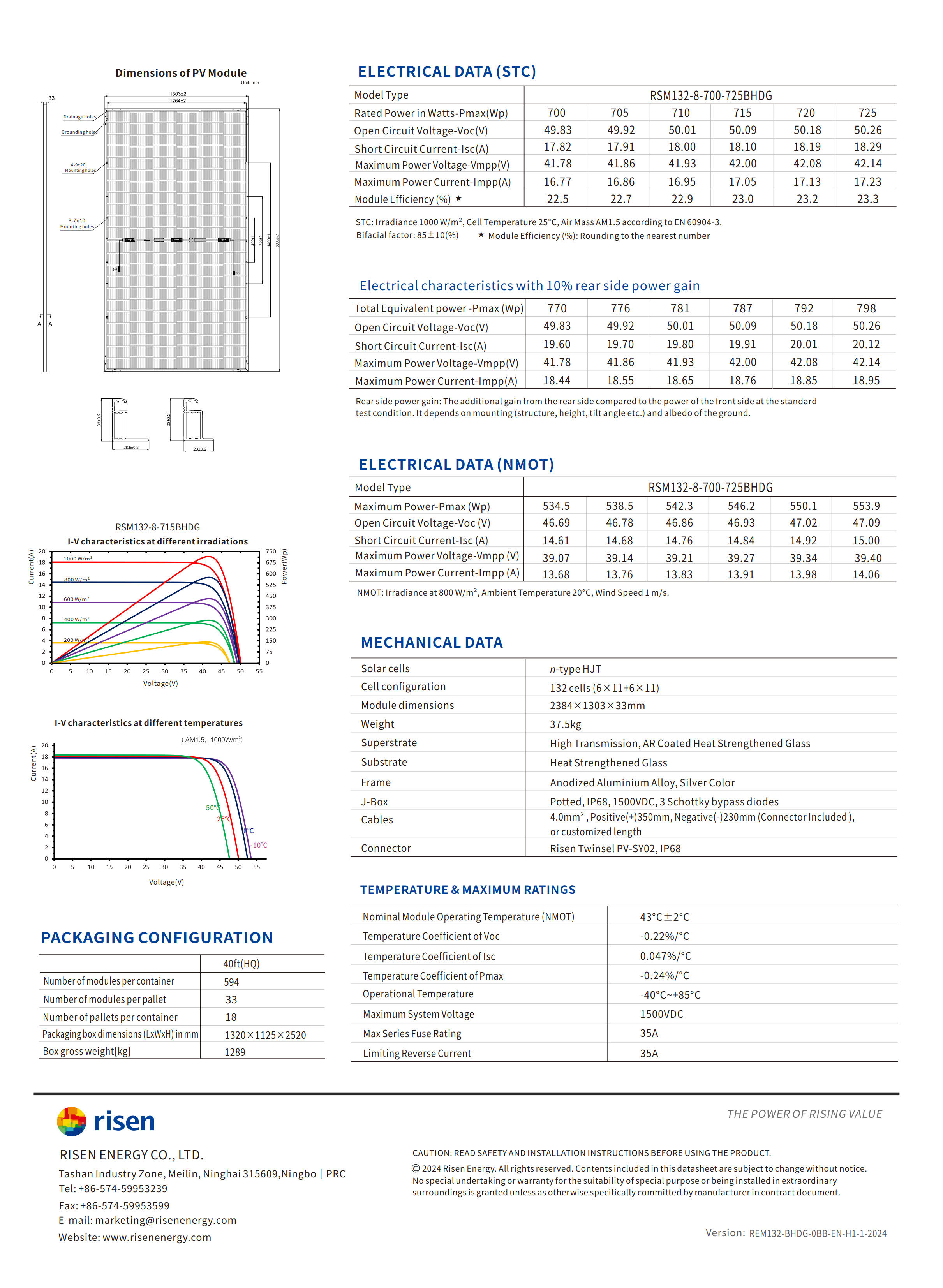 Risen 725W N-Type HTJ Silver frame BIfacial Solar Module 2384*1303*33mm